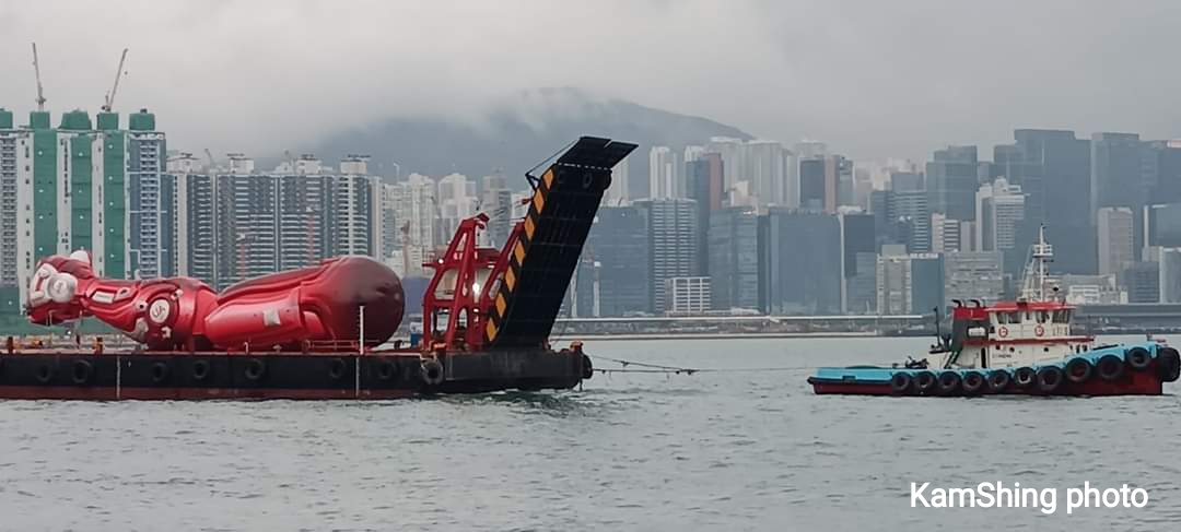 今日見到Yes UA財務嘅巨型手臂在維港巡遊。